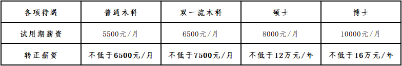 (1)??茖W歷:若在校期間到公司進行跟崗實習,跟崗實習期前三個月實習補貼為3000元,三個月后通過崗位應知應會不低于實習補貼為5000元/月,簽訂勞動合同后執行崗位工資。